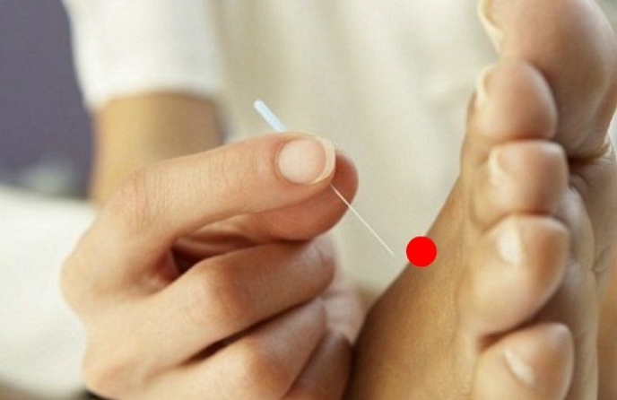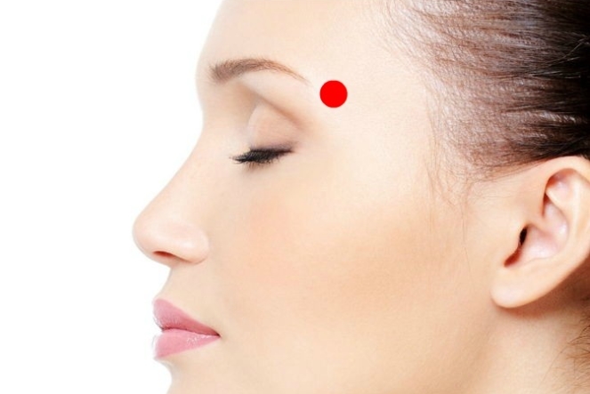 눈썹 끝부분 바로 아래 부분을 지압합니다.