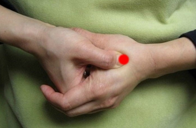 반대 손가락으로 검지손가락과 엄지 손가락 사이를 눌러줍니다.