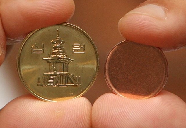 동전에 구리성분이 탈취제 역할을하므로 효과가 좋은 구형 10원짜리 동전을 신발 안쪽에 넣어둡니다.