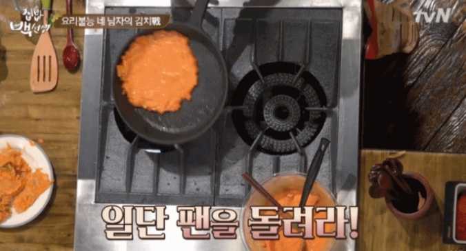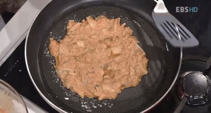 프라이팬을 멋으로만 돌리는게 아닙니다. 바깥기름이 안쪽으로 스며들어 안까지 바삭한 맛을 느낄 수 있기 때문입니다. 코팅팬이면 돌리세요~