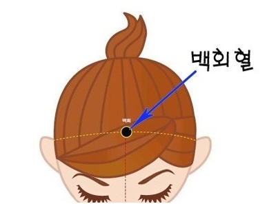 백회는 머리의 정중앙선과 양귀의 가장 윗부분을 이은선이 만나는 곳입니다. 이곳을 뜸하면 뇌를 깨어나게 하고 양기를 즉 정력을 좋게하는 효과가 있다고합니다.