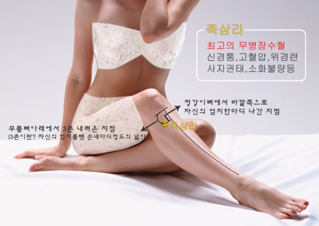 족삼리는 피로회복, 저항력증진, 무병장수혈로 알려져 있습니다.