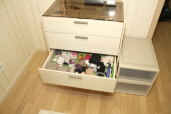 정리정돈에 자신이 없으면 옷방, 찬장 서랍장 등을 활용해 숨기면 효율적입니다.